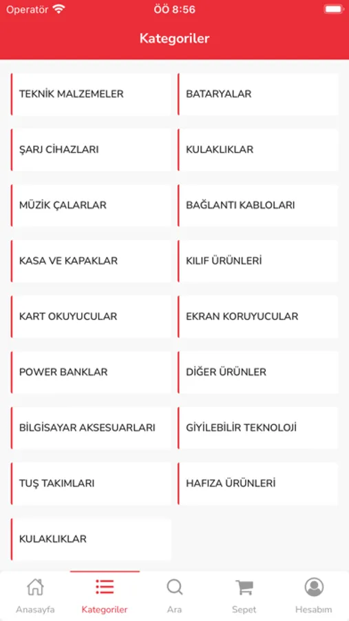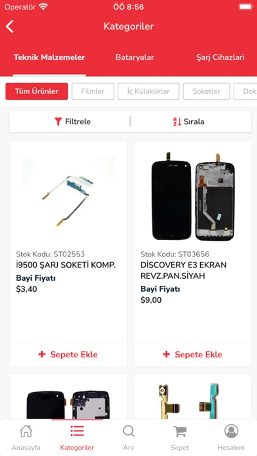 * Ürün kategorilerinde filtreleme yapabilirsiniz