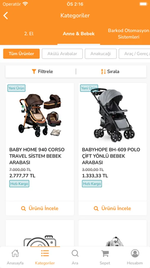 * Ürün kategorilerinde filtreleme yapabilirsiniz.