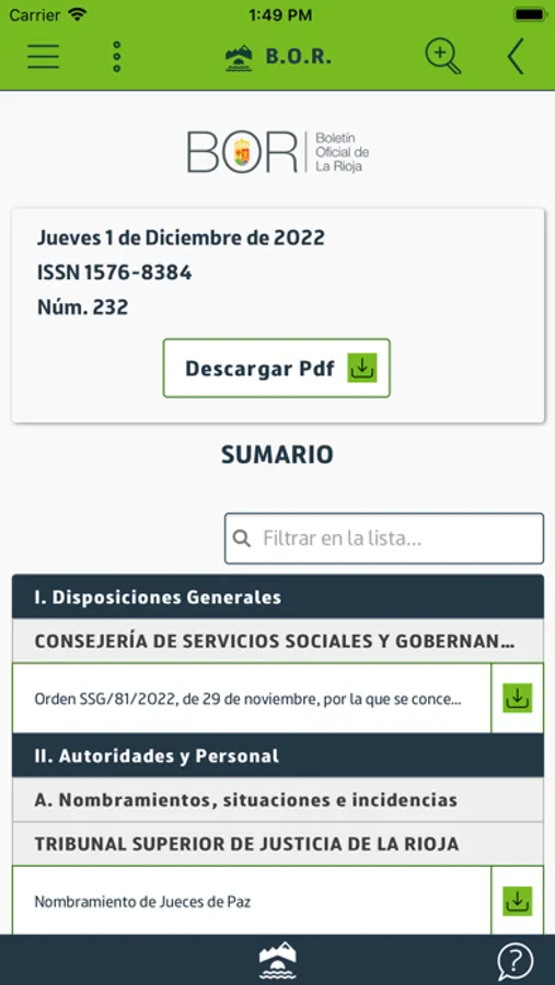 - Acceso al BOR (Boletín Oficial de La Rioja) y búsqueda por fechas