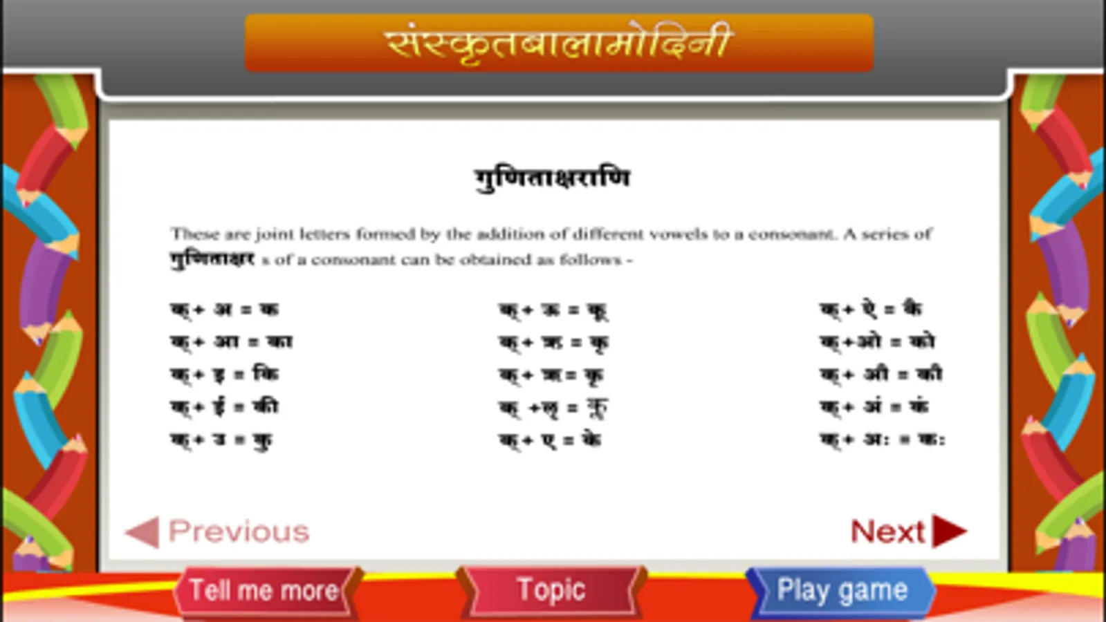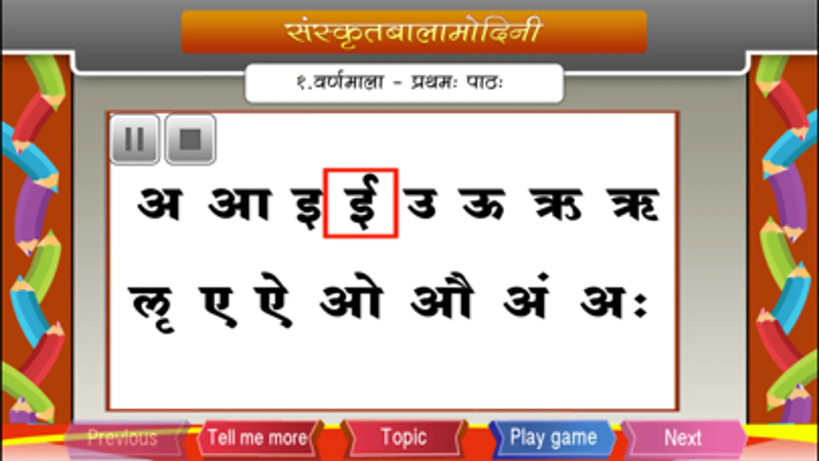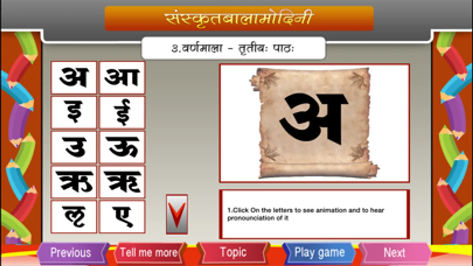 The app has 10 chapters, which teaches you how to write the letters in Devanagiri.