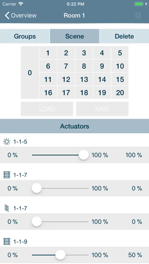 All addressing and/or the entire system can be checked for functionality and correct installation at the touch of a button. IB-Tool also provides the option of operating all actuators and permanently saving their scene settings.