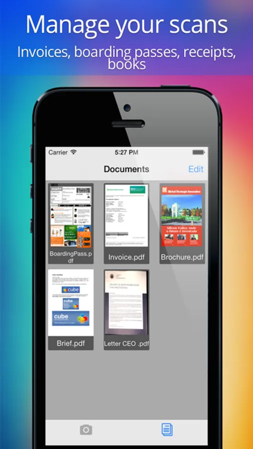 Scan documents, invoices, receipts, business cards, contracts and go paperless!