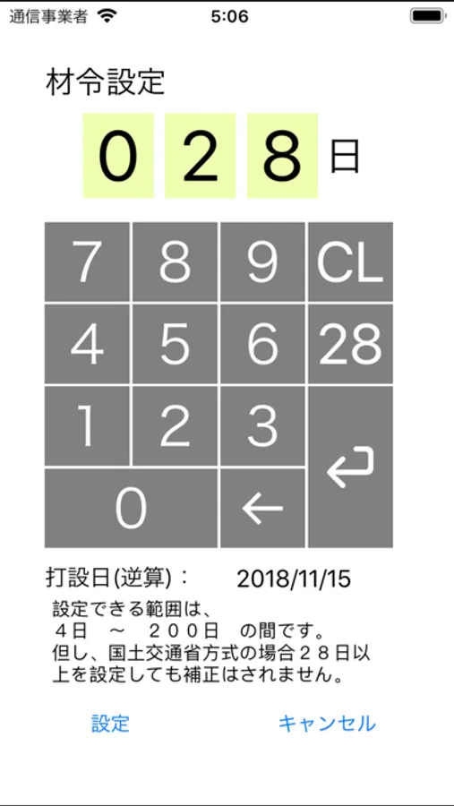 設定したあと、材令の日付部分を押して材令を指定、開始ボタンを押す。
