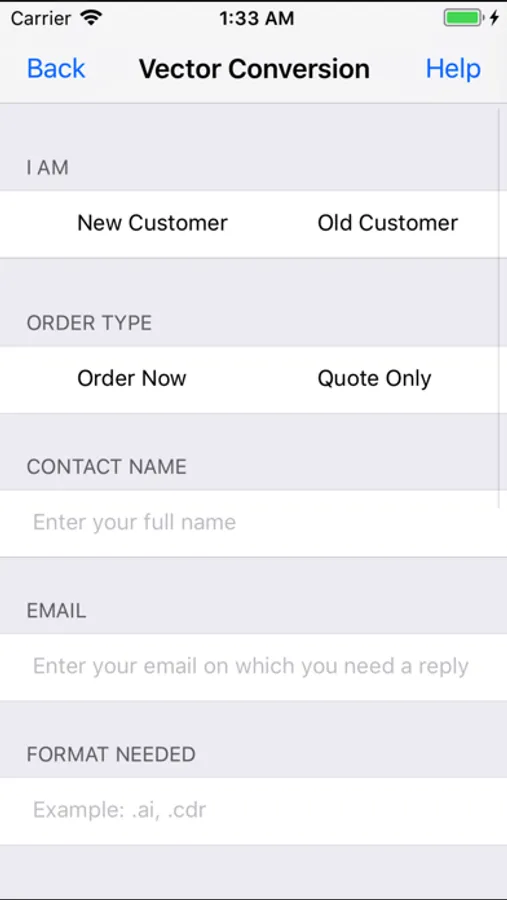 No need to register any account with us. Just download this free application and you are all set for a quote for embroidery digitizing or vector conversion and even place an order.
