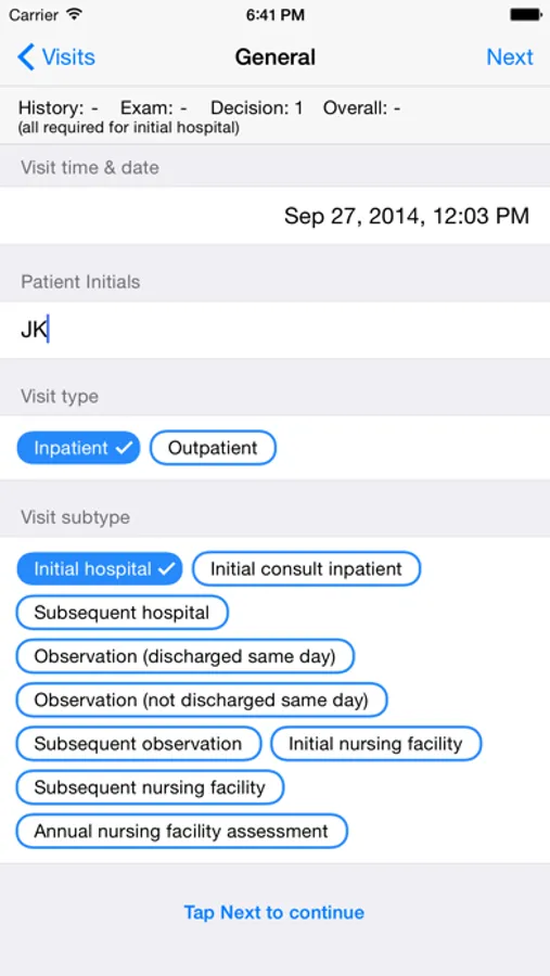VisitCoding is free education tool for Evaluation and Management CPT® code calculation by medical professionals. The calculator uses a patent pending approach that prompts the user for the the components Medicare requires to justify the levels of care. This app dynamically calculates the E&M code as you enter in the components of the visit, allowing you to be efficient with what you enter in the note, while maximizing the code level for what is appropriate to the visit.