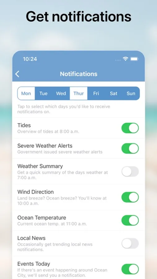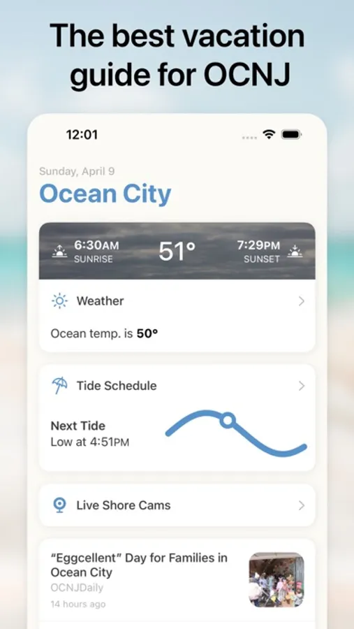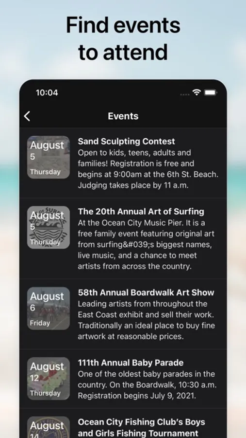 - Events Today: if there's an event happening around Ocean City, we'll send you a notification.*
