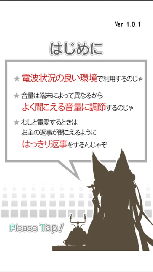 ユーザーは妖狐の主人となり、彼女からの問いかけに、「はい」「いいえ」で答えながら会話を楽しむことができます。
