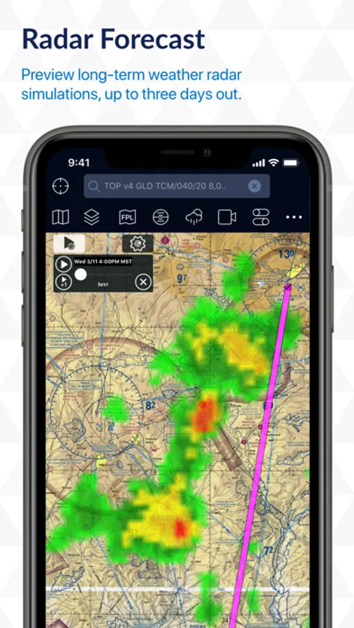 Radar Forecast provides long-term weather radar simulations up to three days out, and you can fast forward your weather radar in one-hour increments.