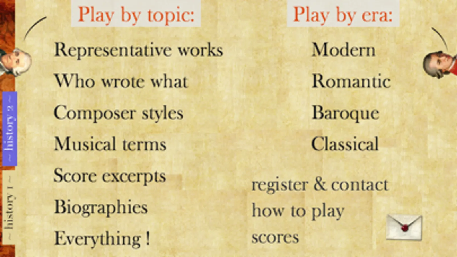 Music History Flashcards is a set of virtual flashcards covering the Medieval, Renaissance, Baroque, Classical, Romantic and Modern eras.