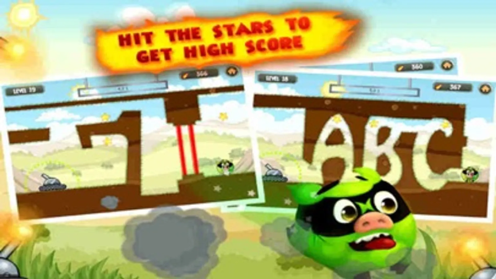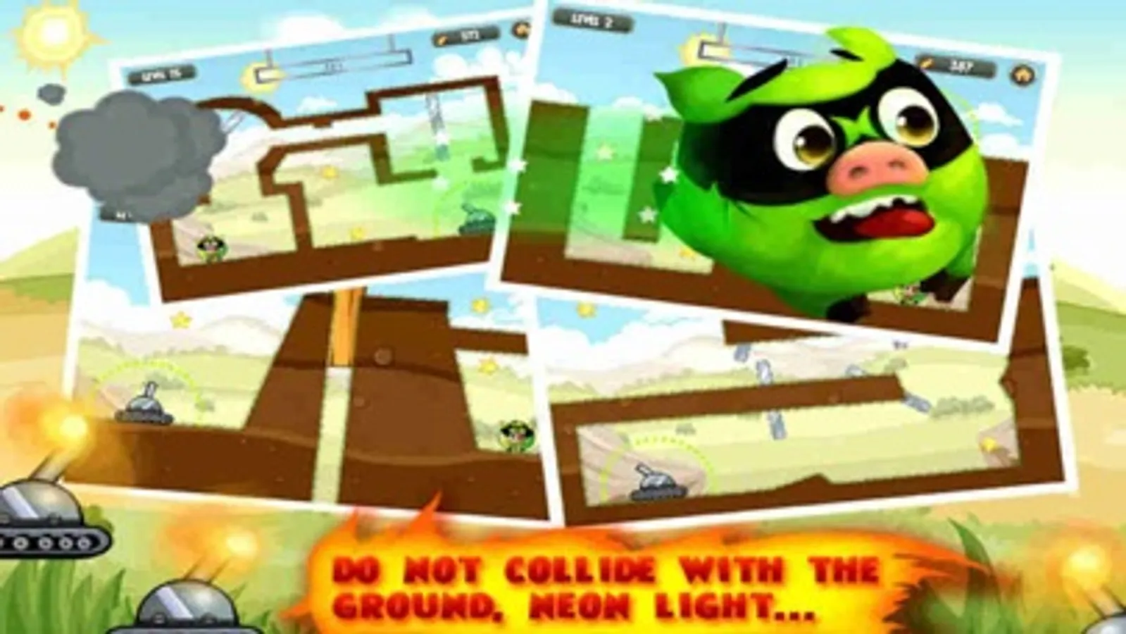 Fire Piggy – Touch inside the green circle to spawn a new bullet to fire the piggy. Please be very careful in some advanced levels. Do not collide with the ground, wall, board, gear and neon light. Good luck!