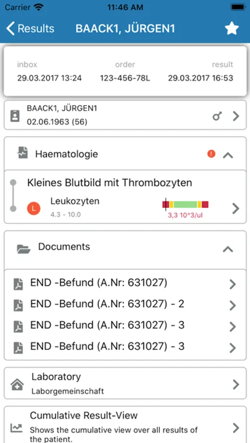 Nutzen Sie labGate mobile um Ihre Laborergebnisse auf Ihrem mobilen Endgerät zu betrachten. Egal ob neue, pathologische oder dringende Befunde, dank labGate mobile und der integrierten Unterstützung für Push-Benachrichtigungen bleiben Sie immer auf dem neusten Stand. Nutzen Sie die Merkliste um sich bei wichtigen Befunden sofort über jegliche Änderungen informieren zu lassen.