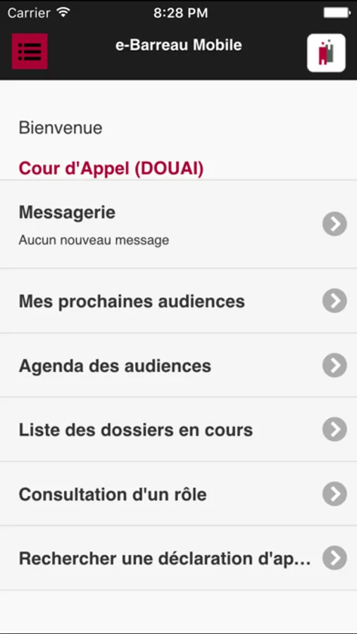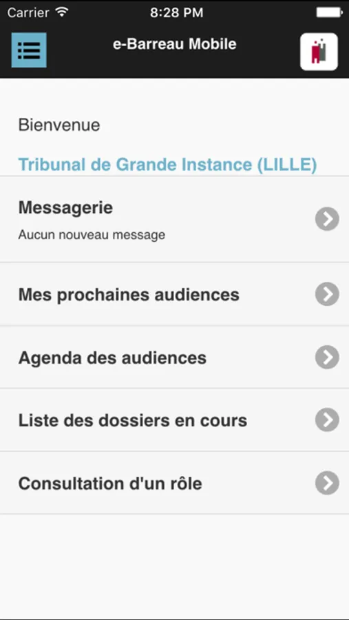 L’application e-Barreau Mobile permet aux avocats d'un barreau Français inscrits à la communication électronique d’accéder aux informations disponibles sur le palais virtuel e-Barreau.
