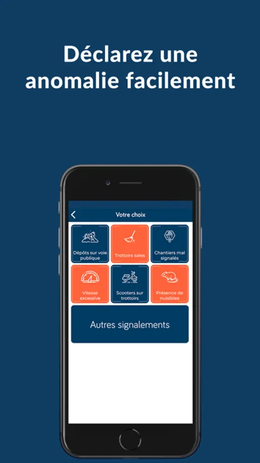 Géolocalisé, il vous suffit de prendre une photo et sélectionner une catégorie de signalement :