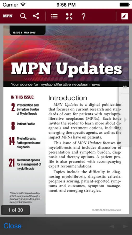 Apple App Description – MPN Updates mobile application for the iPhone®, iPad® and iPod Touch® allows readers to access this interactive digital publication that focuses on the diagnosis and treatment of MPN disease states. The easy-to-read, digital flipbook format provides awareness of emerging therapeutic agents and their impact on patient outcomes. This newsletter is sponsored by Incyte Corp. through a third-party independent grant.