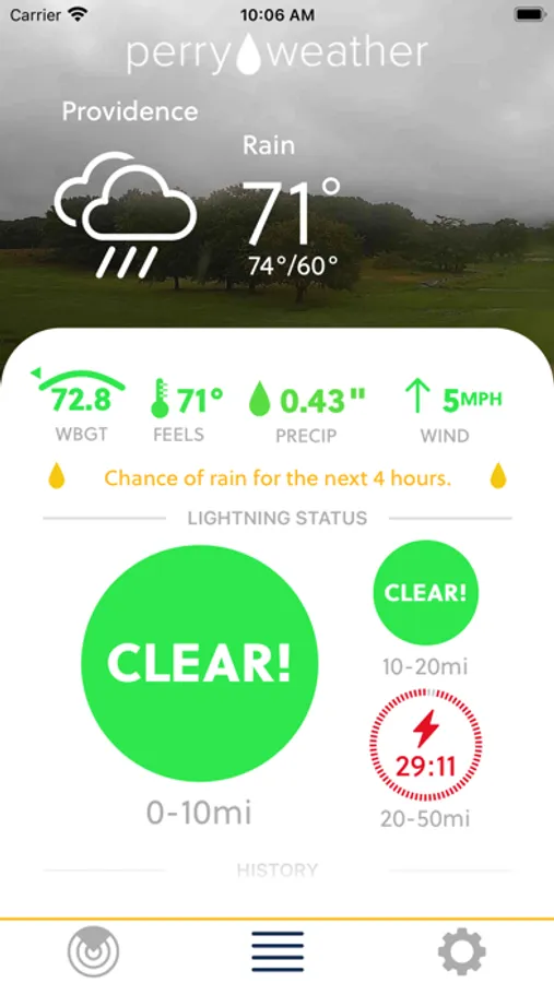 -Perry Weather monitors the exact location(s) of interest based on user-defined settings. Our proprietary alerting method provides users the complete confidence on when to expire and resume outdoor activity.