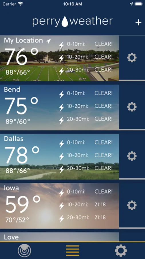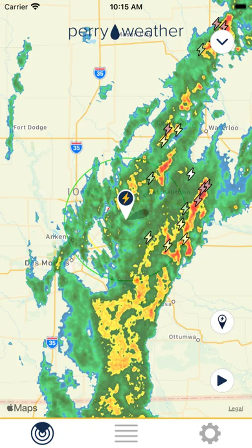 Perry Weather provides real-time cloud-to-cloud and cloud-to-ground lightning strikes, severe weather, and precipitation alerts right in the palm of your hand. Coaches, trainers, risk managers, construction workers, and many more can be proactively alerted of impending inclement weather situations with Perry Weather.