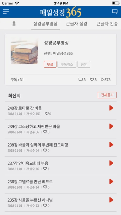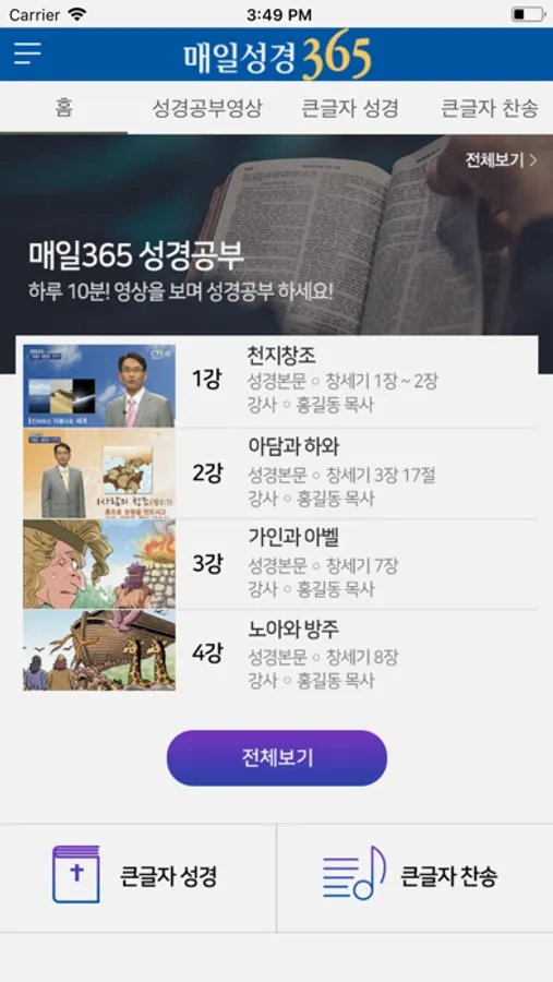 매일성경 365는 가장핵심적인 성경내용을 애니메이션,사건,지도 등을 이용해 성도들이 쉽게 매일 하나님말씀을 묵상할 수 있도록 도와주는 프로그램입니다. 그날의 가장 핵심적인 성경 내용만을 구성하여 성도들의 집중력을 최대한 이끌어 내며, 바쁜 일상과 성경의 어려움으로 힘들어 했던 성도분들과 초신자들에게 깊고 크신 하나님의 말씀을 전하게 될 것입니다.