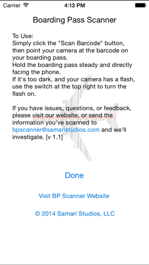 -- Please note that this app does not change a paper boarding pass to a mobile boarding pass. Not all airlines support mobile boarding passes at all stations; please refer to your airline for more information on obtaining mobile boarding passes. This application presents the information encoded in a barcoded boarding pass for your inspection. --