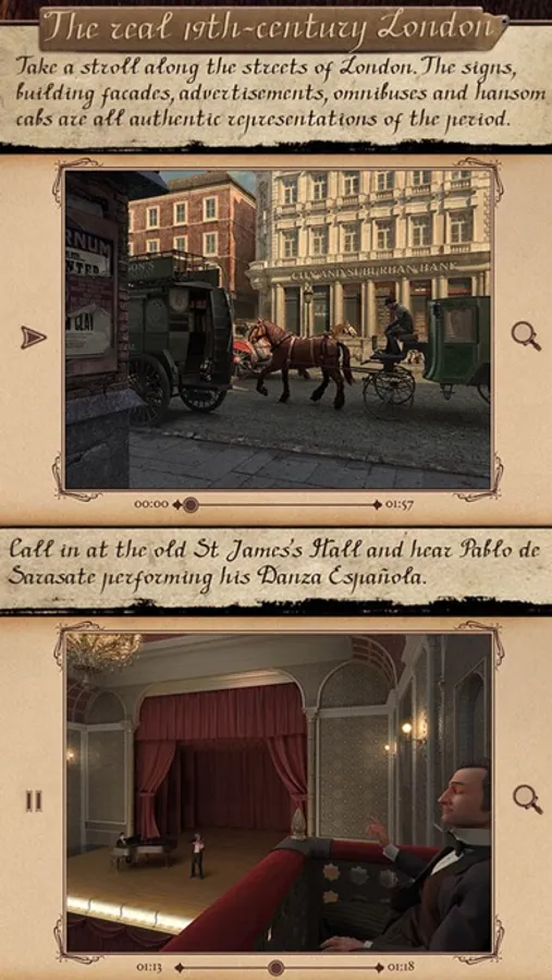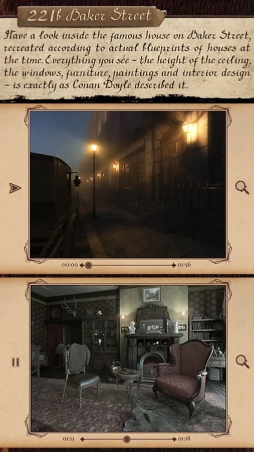 Read, listen, embark on a journey, conduct an investigation, and discover the world of the great detective Sherlock Holmes for yourself. There is more to this story than just words and pictures. In place of simple illustrations, 3D animated images adorn its pages. You are no longer looking on from the outside: you are directly involved in the events taking place, and see the world through the eyes of Dr Watson.