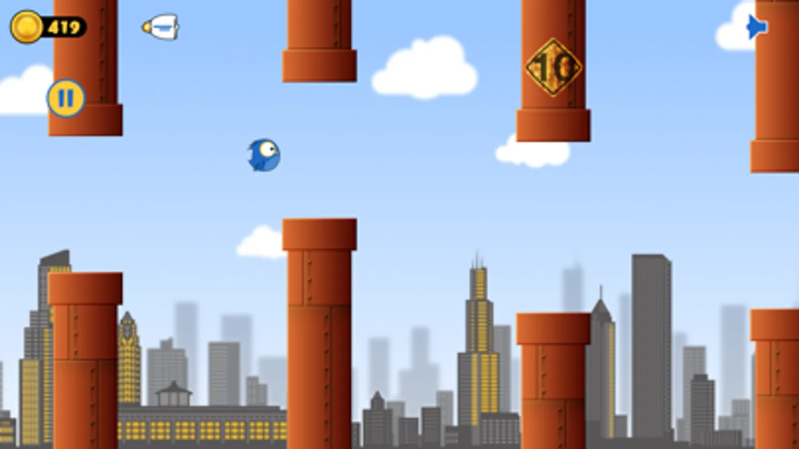 Meet Happy! He's a small, blue bird with a hard, hard head. Help him fly through obstacles to score points.