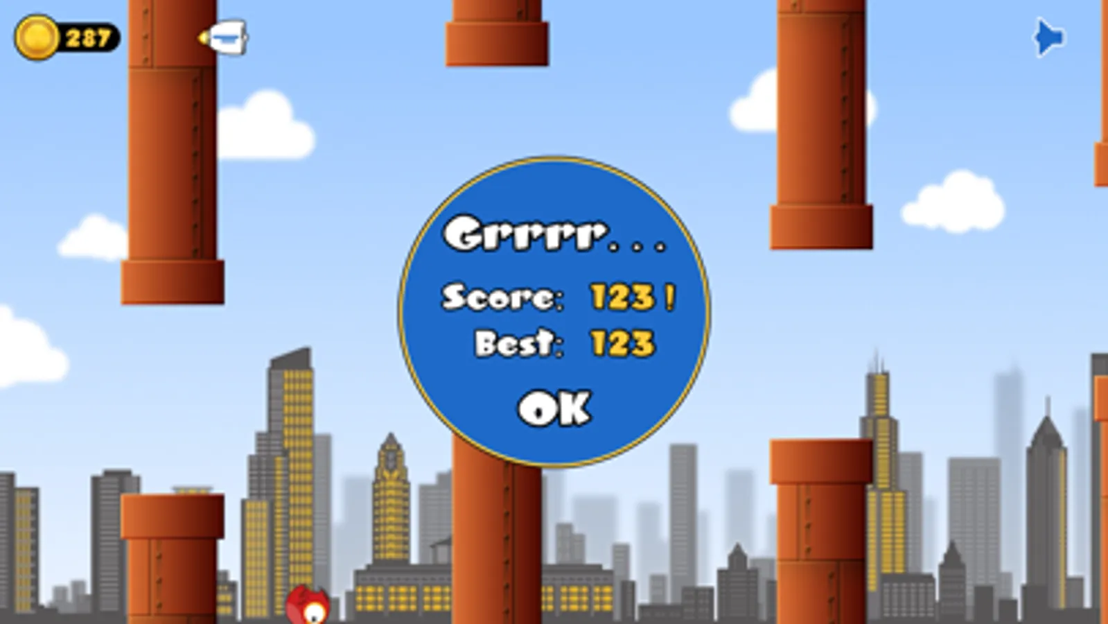 The smash hit reimagined! • Progressive or Classic difficulty! • Crash Helmets! • Jet Boosts! • Head starts! • Unique hazards! • Special death effects! • 6 birds to choose from! • See why Flap Happy is best in its class!