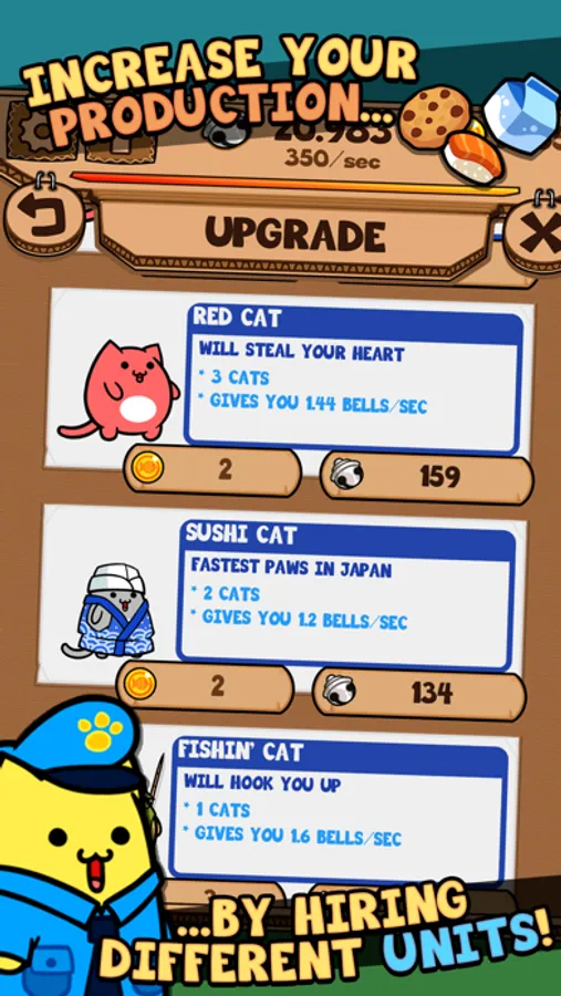 For every piece of food given to the queen, you earn points that can be used to hire new cats.