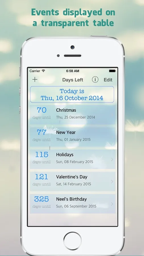 Days Left displays the events on a beautiful transparent table.
