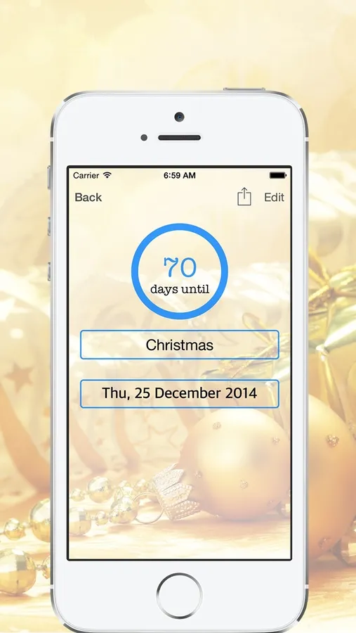 Days Left is very useful as a reminder for all sorts of events (such as Birthdays, Holidays, Parties, Functions, Meetings etc. It can even track how many days since you quit smoking.)