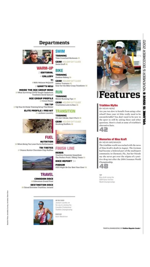 TMC showcases a way of life. Our indispensible training and racing tips, news coverage, in-depth reviews, inspiring stories of both pros and age groupers and stunning photography capture the best of triathlon. With articles by the country’s top coaches, riveting narratives by award winning writers and real world product testing, TMC is the only voice of its kind in Canada.