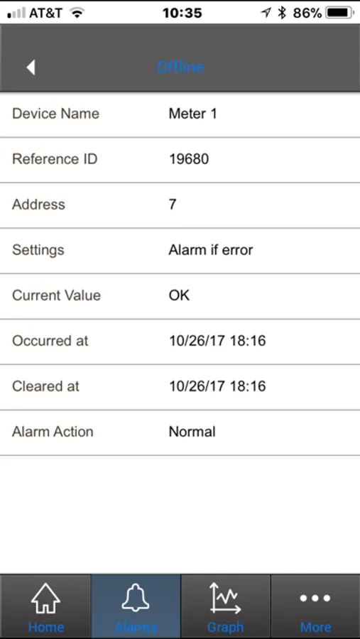 -Alarm management (view current alarms, acknowledge alarms, acknowledged list, cleared list)