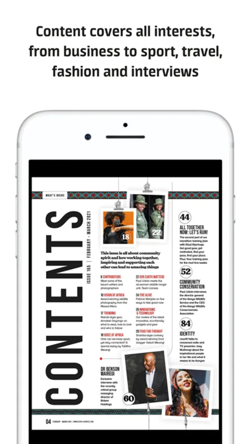 Packed with the vibrancy and colour of Africa, MSAFIRI celebrates all that’s great and exciting about Africa. Content covers all interests, from business to sport, travel, fashion and interviews, and reaches across Kenya Airways’ route network across Africa and around the globe.