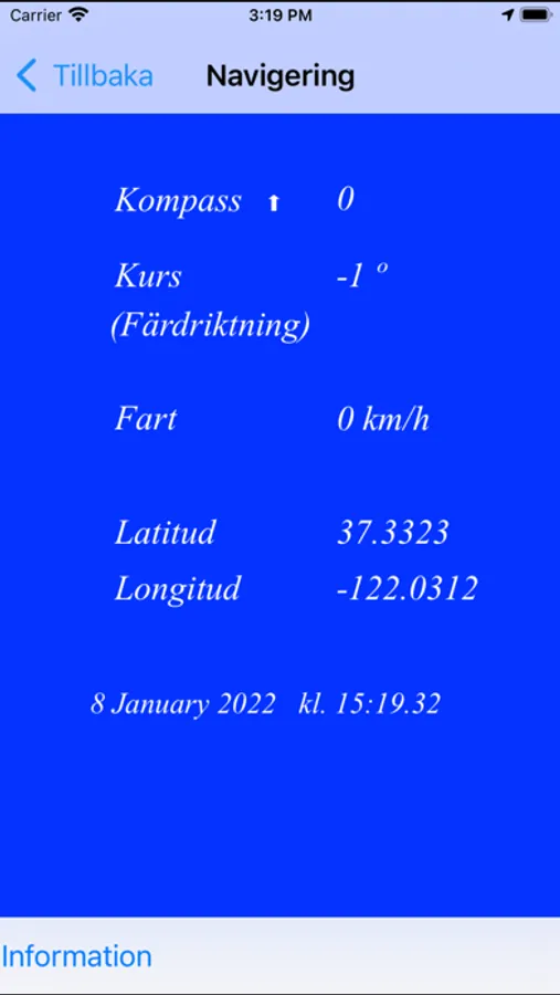 - Innehåller en enkel navigeringsfunktion med Magnetisk kurs, gps-kurs, hastighet och koordinater.