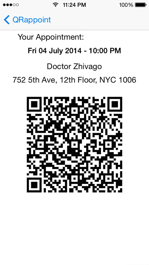 Instantly provide appointments directly to your clients, friends or partners calendar! Just setup a date & time and press the button to create a QRcode to be scanned from any receiving device.