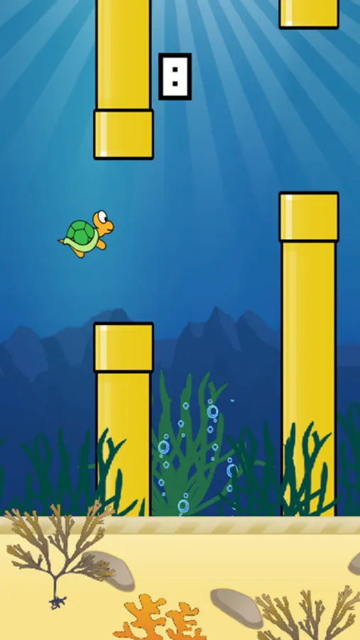 Tap on the screen to make the turtle swim. Avoid the obstacles and beat your friends high score.