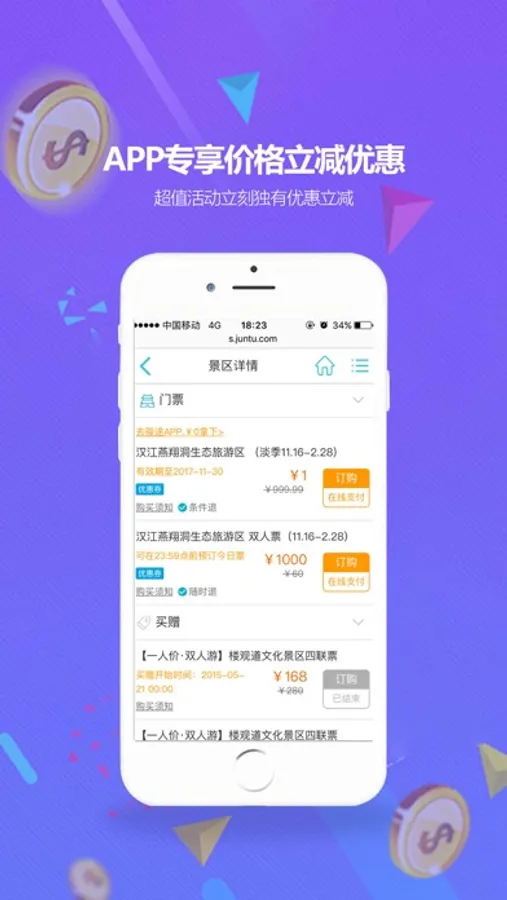 骏途旅游APP是手机上的骏途旅游网(juntu.com),是陕西旅游集团旗下、西北最大的综合旅游电商平台。
