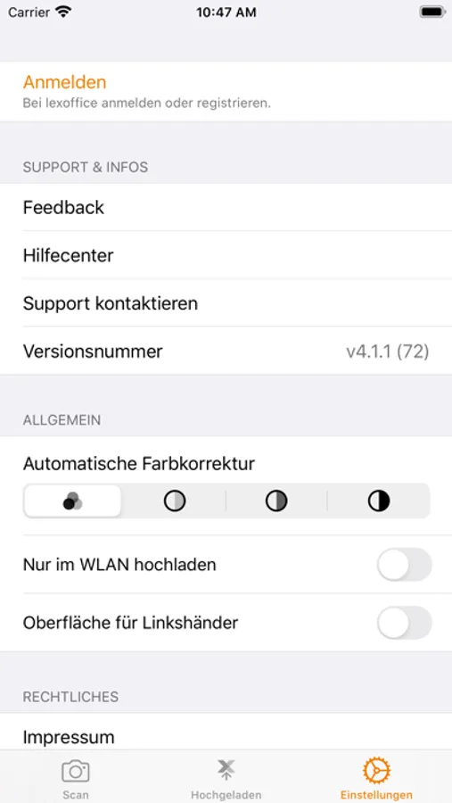 Die lexoffice scan App ist der einfachste Weg Belegbilder unterwegs oder im Büro zu scannen und mit einem Knopfdruck zu lexoffice hochzuladen.
