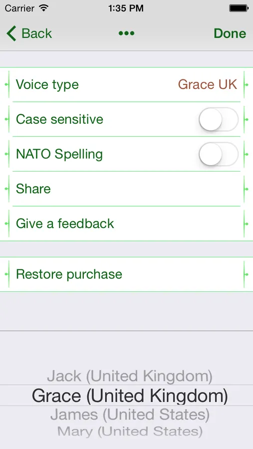 - Several voice types (Jack and Grace (UK) & James and Mary (US));