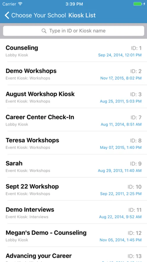 Simply launch the app, select your school, then select the kiosk from your kiosk list. When the kiosk is open, students may swipe in using their ID card through a card reader such as the Magtek iDynamo. To access and exit the active kiosk, managers will use the 4-digit PIN set in the kiosk record on the Manager side. By using the PIN to exit, Managers can close out of one kiosk and launch another.