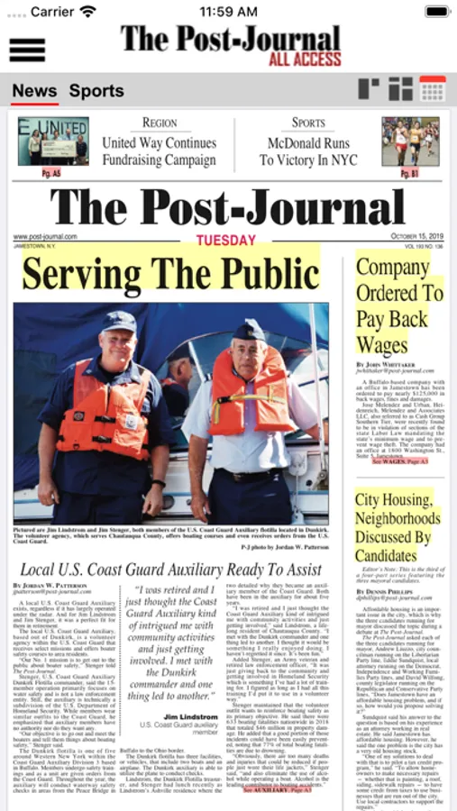 Stay on top of news from Jamestown and surrounding areas by receiving the full print version of The Post-Journal on your iPhone or iPad. Every page of every edition is delivered to your device. The Post-Journal is the best source for local and national news, sports, weather, and features in the Jamestown and Chautauqua County area. Download the app to view the printed pages of the newspaper or read headlines and stories along with related photos in a built-in story viewer.