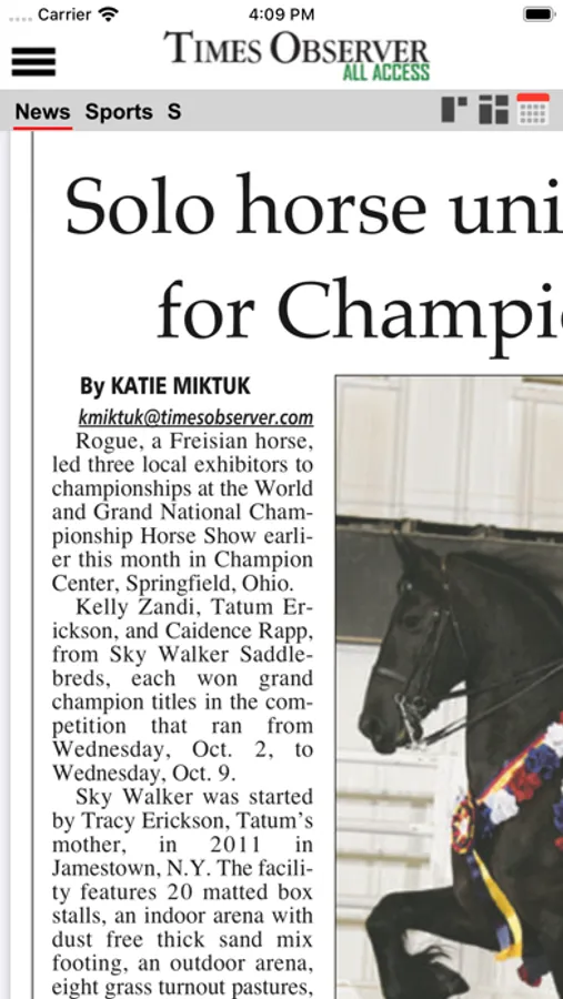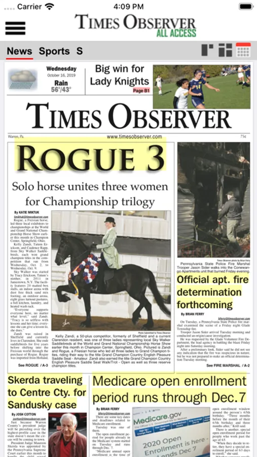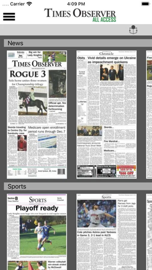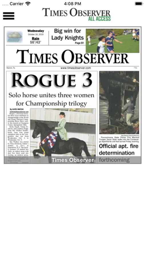 Stay on top of news from Warren and surrounding areas by receiving the full print version of the Times Observer on your iPhone or iPad. Every page of every edition is delivered to your device. The Times Observer is the best source for local and national news, sports, weather, and features in the Warren County area of northwestern Pennsylvania. Download the app to view the printed pages of the newspaper or read headlines and stories along with related photos in a built-in story viewer.