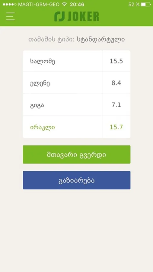 This application represents the tool for Joker lovers, a game that is very popular in Georgia. It will help users register the performance of all Joker players in a very comfortable format.