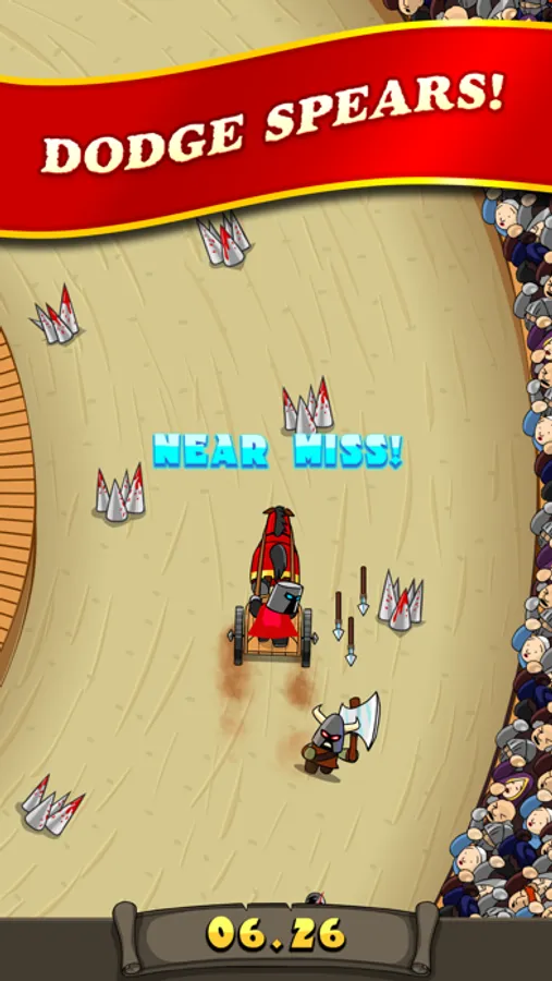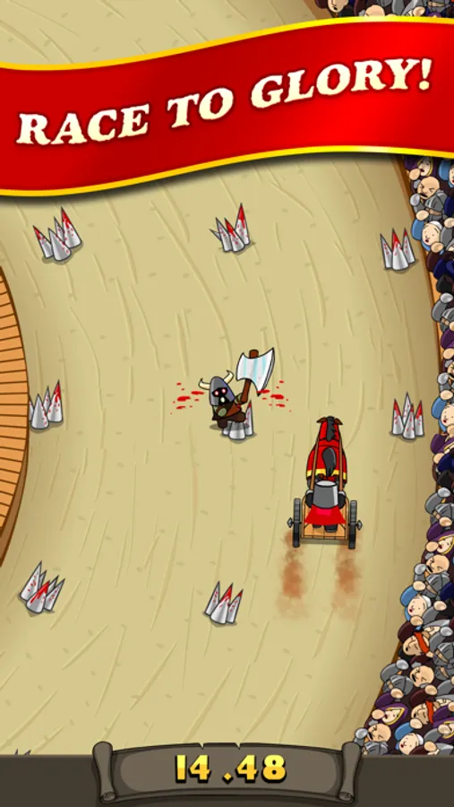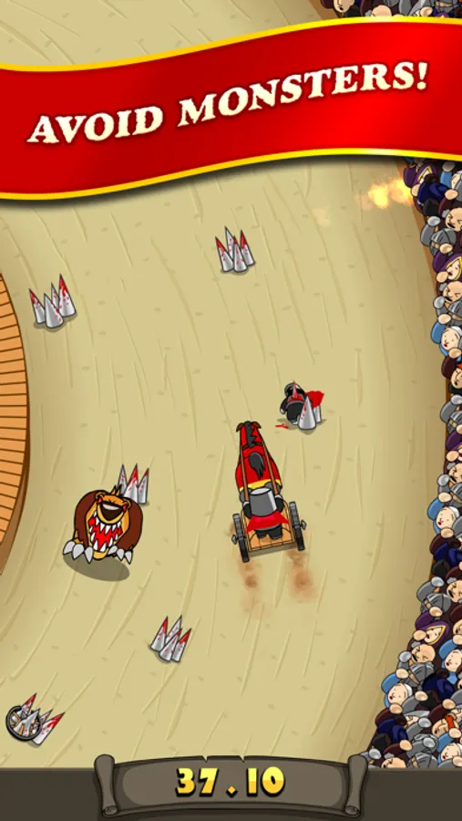 Avoid the monsters, bloodied spikes, flying spears, and blasts of fire as you race around the coliseum track in a battle for survival! Challenge your friends to best your time! Survive long enough and be rewarded the coveted "3rd Star". Share a video with your friends of your race and your inevitably untimely death!