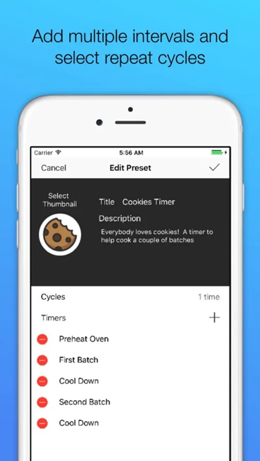 Practice Time is an interval timer that allows you to create and store highly customizable presets for quick and easy use.