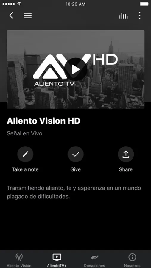 The Aliento Vision TV Network App was created with the Subsplash App Platform.