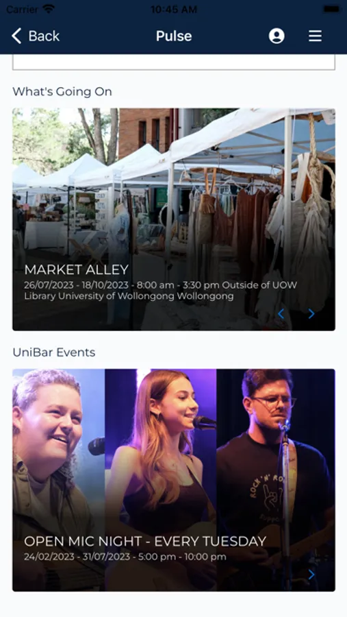 Key features for students include easy access to their SOLS and UOWMail, while staff can use Staffmail, Web Kiosk and view UOW Jobs. Alumni can view the global events calendar, access their free library membership and read the alumni magazine. Guests can view upcoming events, information for future students, library details and UOW news.