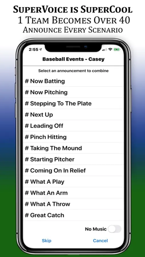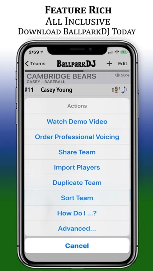 Looking to take your game introductions and announcements to the next level? Look no further than the BallparkDJ mobile app. This complete solution for professional voice and music intro creator app is a great tool for all varieties of youth sports. And introduce every conceivable situation with SuperVoice!