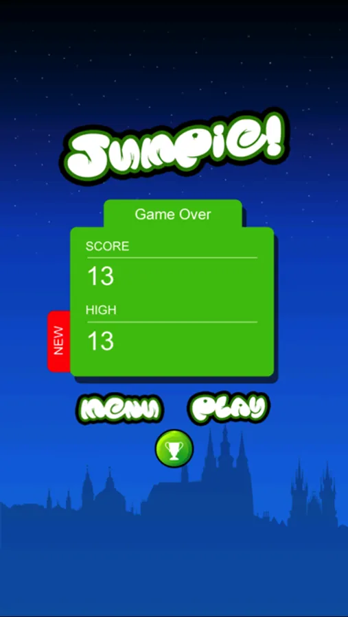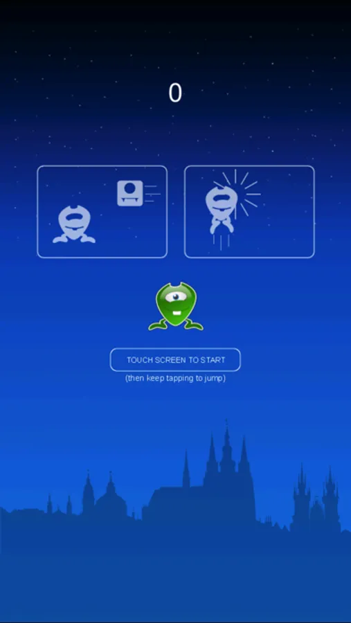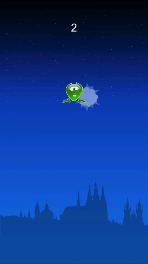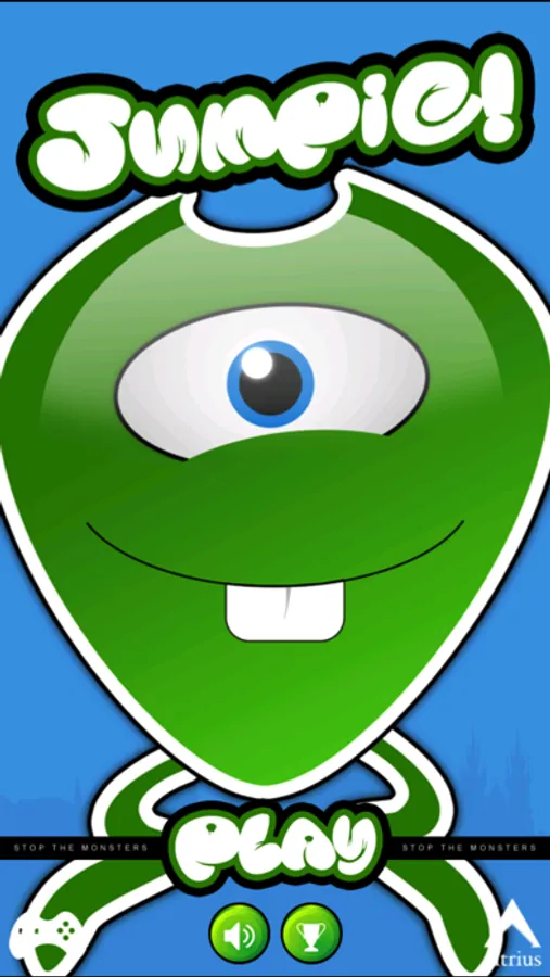 Simple & Fun, Jumpie! is a game where the alien protects his land from monsters. As the monsters appear on the right, you must keep Jumpie in their way and destroy them by jumping into them. Just tap the screen to jump, but don't fall off the screen or let a monster get by you, that's game over.
