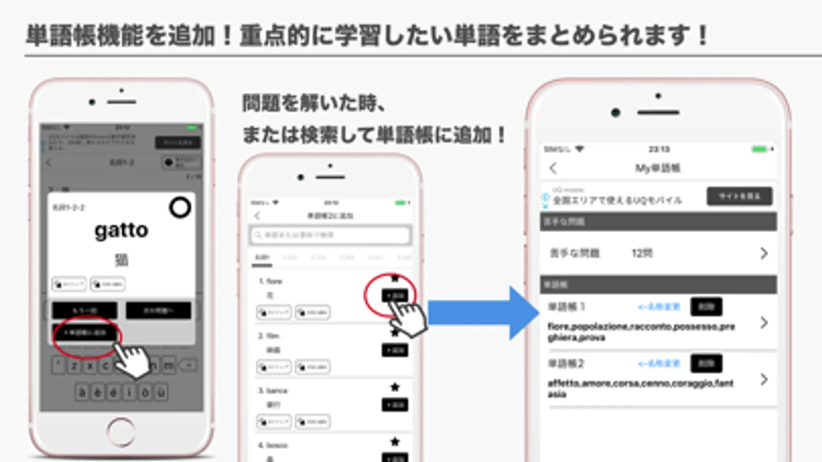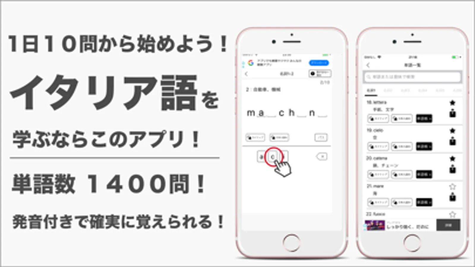 イタリア語単語問題を1400問を収録しています。