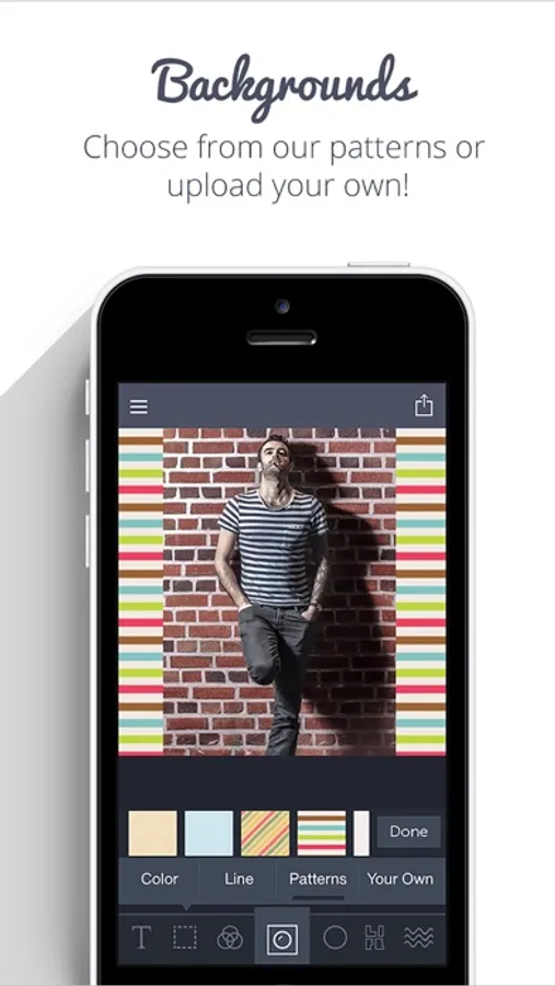 Shipped with loads of backgrounds, this feature, combined with text, filters and overlays, allows for many creative combinations