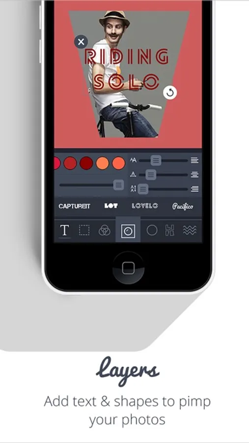 By using the layers option you can easily add awesome filters, overlays and typography to your photos.